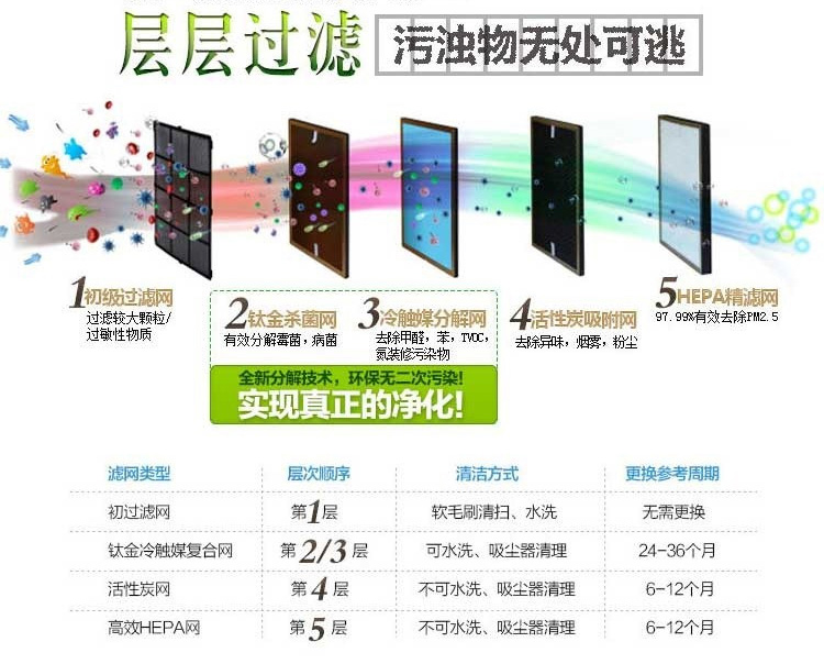 2、五重過濾系統設計,高效復合HEPA過濾網